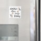 The design on this dishwasher magnet features a young cat standing on 2 legs and he is reaching towards text that reads: "Dishes are Dirty". Turn this magnet up-side-down and the same adorable cat is featured with this text: "Dishes are Clean". This whimsical design makes a perfect gift for that cat lover in your life!