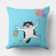 Playful Cat Pillow Pair Mum Gift Neon Blue