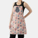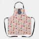 This apron features a playful pattern of cats in various poses. The cats come in a mix of blue, and pink, adding a fun and whimsical touch to the design. The background is a soft light pink colour.