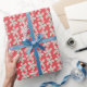 Playful Daisy Pattern on Bright Red Background Wrapping Paper