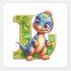 Playful Dinosaur and the Leafy Letter L Square Sticker