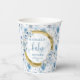 Playful dusty blue watercolor flowers gold baby paper cups