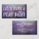 Filling most of the front of this card, in an open, chunky, playful black font, a typography graphic overlay reads "Let's have a play date!" The background of both sides has been covered in a grungy, distressed, rustic background graphic image in shades of purple and blue. Template fields were set up for your personal details on the back, using an agreeable, all caps sans-serif font. You can change the font as well as the sizes of the words if you'd like... just click for further customisation to access the editing fields. All details were added separately and left unlocked to give you maximum design control. Please don't hesitate to reach out if you need assistance. // 21 //