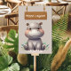 Make a splash with this fun hippo-themed table sign! Featuring an adorable baby hippopotamus, a weathered wooden sign, and lush tropical greenery, this design adds a lively and adventurous touch to any setting.