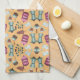 Playful kitchen-themed pattern featuring aprons tea towel