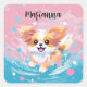 Playful Papillon Pup: Splash of Pink and Blue Square Sticker