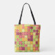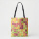This image is a vibrant geometric pattern featuring a grid of squares, each containing a centred circle. The design uses a harmonious palette of warm and soft colours, including yellows, oranges, greens, and various pinks and reds. The circles sometimes contrast with their square backgrounds, creating a playful, retro-inspired "polka dot in a grid" effect. The composition is orderly yet visually energetic, making it appealing for modern decor or digital backgrounds.