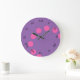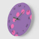 A funny and different design based on just one huge dot covering the entire clock face, and a circle of twelve smaller pink dots indicating the hours, and that seems to be falling off the clock. The twelve pink dots used to highlight the Roman digits...