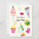 Bursting with charm, this bridal shower card features retro-style wedding icons—cake, rings, hearts, and champagne—set in playful pink tones. Inspired by joyful celebrations, it blends nostalgia with festive energy, perfect for honouring the bride-to-be.