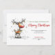 Celebrate the holidays with a touch of humor and charm using this funny quirky Santa reindeer Christmas party invitation. Featuring a whimsical watercolor reindeer and Santa in classic red and green, this minimalist cartoon design adds playful personality to your festive event. Perfect for office gatherings, family celebrations, or holiday cocktail parties, it’s editable and printable for easy customization. The hand-drawn style and modern lettering make it both trendy and timeless. Bring smiles and cheer to your invitees with this lighthearted, artistic Christmas design!