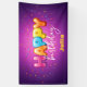 Get ready to transform any space into a vibrant fiesta with this dazzling banner! Across the purple backdrop, "HAPPY" bursts forth like a sky full of fireworks, each letter a bubbly balloon of pure fun in a kaleidoscope of pink, orange, blue, and yellow. It's a playful dance of colours that practically hums with excitement.