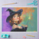 Bring bold magic and cheeky charm to your Halloween crafting with this dazzling decoupage tissue paper featuring a vibrant red-haired witch, casting enchantment with a glowing wand and a confident smirk. Set against a swirl of purples, oranges, and greens, this design is bursting with personality—ideal for spellbinding statement pieces.