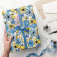 Playful Retro Floral Pattern, Soft Blue and Yellow Wrapping Paper