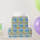 Playful Retro Floral Pattern, Soft Blue and Yellow Wrapping Paper