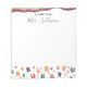 Personalised teacher notepad with playful letters scattered across the bottom and top edges. Add your name for a fun, creative classroom accessory or unique teacher gift.