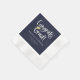Congrats Grad! Playful white script with golden graduation cap accent, graduation party napkins. Features, navy blue colour background.