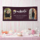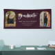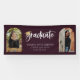 Playful white script with gold colour graduation cap accent, arch frame 2 photo graduation banner. Features, dark purple colour background.