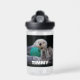 Child's size, clear plastic water bottle that features the photo image of a couple of Sea Otters playing with a ball toy along with a child's name printed in white, bold letters. Personalise water bottle by editing name and replacing with child's name. Select your water bottle colour.