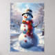 Playful Snowman Wall Art Poster" brings the whimsy and charm of winter to your home decor. This delightful artwork features a cheerful snowman, adorned with a carrot nose, coal eyes, and a wide smile, radiating joy and playfulness.