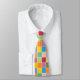 Colourful chequered necktie designed with various shades of yellows, orange, greens, lavender and blue.