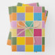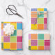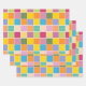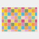 Colourful chequered wrapping paper sheets designed with various shades of yellows, orange, greens, lavender and blue.