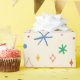 A vibrant and playful pattern featuring colorful stars, swirls, and dots on a creamy background. Perfect for festive occasions and cheerful gifts!