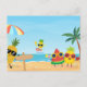 Playful summer beach funny cartoon fruit postcard