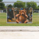 This 3' x 5' outdoor banner features an adorable teddy bear in a playful mood, surrounded by flying bubbles. The lively design captures a joyful, carefree moment, perfect for adding fun to any outdoor space.