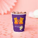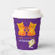 These purple twins' birthday party paper cups feature two adorable cartoon orange kittens with tails shaped like hearts. The vibrant purple background is accented with playful orange and gold confetti dots, creating a festive and cheerful look. The text, in playful orange typography, is fully customisable, adding a fun and personal touch that's perfectly adorable for kids. These cups are perfect for serving drinks at a twins' birthday party, bringing a unique and joyful vibe to your celebration. Personalise them with your own message to make the event even more special and memorable!