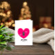 A bold and playful Valentine’s Day card featuring a bright pink heart with a toggle switch and the message “LOVE MODE ON.”