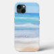 iPhone Cell Phone Case printed with Playful Waves On A Sunny Day At The Beach by TheFabricSeal | Zazzle is a watercolor mixed media artwork design with gorgeous views of clear blue sky and playful ocean waves of turquoise blue and green coming ashore onto the sandy beach shoreline.