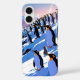 Cute anime phone case with penguins sliding down snowy hills under a colourful winter sky. Perfect for playful, fun, and family-friendly winter designs.