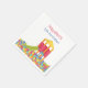 Party supplies paper napkins that are perfect for that birthday party at an indoor playground gym! This colourful paper napkins are in a rainbow colour palette featuring a playground house equipment with a slide and ladder that is situated within a ball pit. Add your birthday party message in the fun fonts!