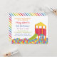 Have a day of fun and play for your children guests and birthday boy or girl by hosting the birthday party at an indoor playground gym! This colourful invitation with a rainbow colour palette features a playground house equipment with a slide and ladder that is situated within a ball pit. Your children guests are going to look forward to the party! Personalise easily with your birthday party details.