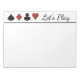 This notepad has a graphic of spades, diamonds, clubs and hearts with text that says "Let's Play"