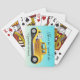 Playing card with quote "Never bet against the upgraded old timer", and vector drawing of yellow hot rod.