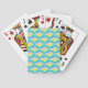 Turquoise and yellow arches are tiled to overlap. Resulting pattern resembles mermaid or fish scales.