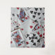 Perfect for the poker player in your life.  These scattered playing cards have hearts, spades, diamonds, and clubs.