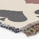 A quality printed throw has its advantages. This is a much finer weave throw than its loopier cousins, and though lighter, it is worth the investment for custom room accessorizing. The back is much prettier than the typical brown, and the fringe on the long sides very vivid, the selvage nicely done. Before photographing, I washed the throw in cold water, delicate, with a thicker woven throw the same size. On tumble dry low, this throw was dry in half the time as the other. This is a very practical quality if you use throws for furniture covers or to wrap up in frequently. The sleekness of the fabric makes it a great layer for accenting or protecting without the feeling of sitting on too much stuff. Perfect for napping or when you feel a light chill coming on. The color printing is beautiful and on this fabric, matched the design and color of my Photoshop image. This is an advantage for blending room fabrics and colors. The fringe on the short sides prints the colors from the design image and therefore varies from the side fringe. I streaked a white fractal line through the plaid pattern to give the illusion of weaving. This printed as crisp as an illusory thread, and put some white in the short side fringe, showing another advantage of print vs loomed- for artistic purposes, line lines, detail, and color integrity can be planned and preserved. My loomed throws have color limitations and more of a needlepoint texture. Print throws reproduce an exact image. The throw felt a little stiff straight out of the package, but this went away in the first delicate wash. Of course I searched the wash water for ink or bleeding and there was none.