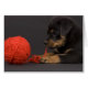 rottweiler 1,5 months old puppy is playing with red yarn ball