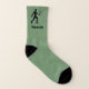 A squash or racquet-ball player, depending on where you are in the world, in a fun repeated motif on green socks. This design shows a silhouette of the champion in action. If you need a different background shade, simply opt to use the edit function and you can pick your perfect colour. You also have the option to change the text to initials or a short name. Note: The image and text will show on the outer side of each sock, the inner side will be a plain colour.