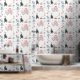 The repeating pattern creates a delightful scene across the wall, where every glance reveals a new charming detail — from flying animals to little wagons and balloon adventures.
