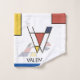 Stately, funny, artistic monogram. Here is the letter "V". Neoplasticism style, or De Stijl, line and colour artistic decoration, the funny bird sits on the letter. The field of art is located under the letter. The template name "VALENTINE" is located under the image. An elegant and unique set of bath towels for anyone. This design is fully customisable. You can change or delete the template name, and you can change images. If you wish to change fonts, colours, sizes or the whole composition of the design feel free to use the "Edit Design" or "Personalise" (as the case may be) button of the blue colour to further customise it. You will be transferred to the "Design Tool" where you can find fonts, colours, sizes on the right menu; layers, images, geometric elements, backgrounds on the left menu. Just be creative, customise, buy one, enjoy the party, and be happy!