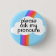 Please Ask My Pronouns Colourful Rainbow Cloud 3 Cm Round Badge