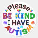 Please Be Kind I Have AUTISM Classic Round Sticker