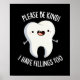 Please Be Kind I Have Fillings Too Funny Tooth Pun features a cute little tooth with a toothy smile. Perfect pun gift for family and friends who love cute tooth puns.