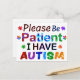 The message of “Please Be Patient I Have AUTISM” to understand and respect people with Autism and encourage kindness towards them.