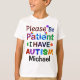 The message of “Please Be Patient I Have AUTISM” to understand and respect people with Autism and encourage kindness towards them.