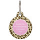 NewParkLane -  Pet tag, with a trendy leopard pattern, with a fun quote: 'Please call my my mum, before she freaks out!' in a pink round frame. The backside has a text template for your name and phonenumber. Easy to customise in Zazzle for a personalised design. All text styles, colours, and sizes can be modified to fit your needs.