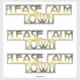 These stickers say "Please Calm Down" on them.